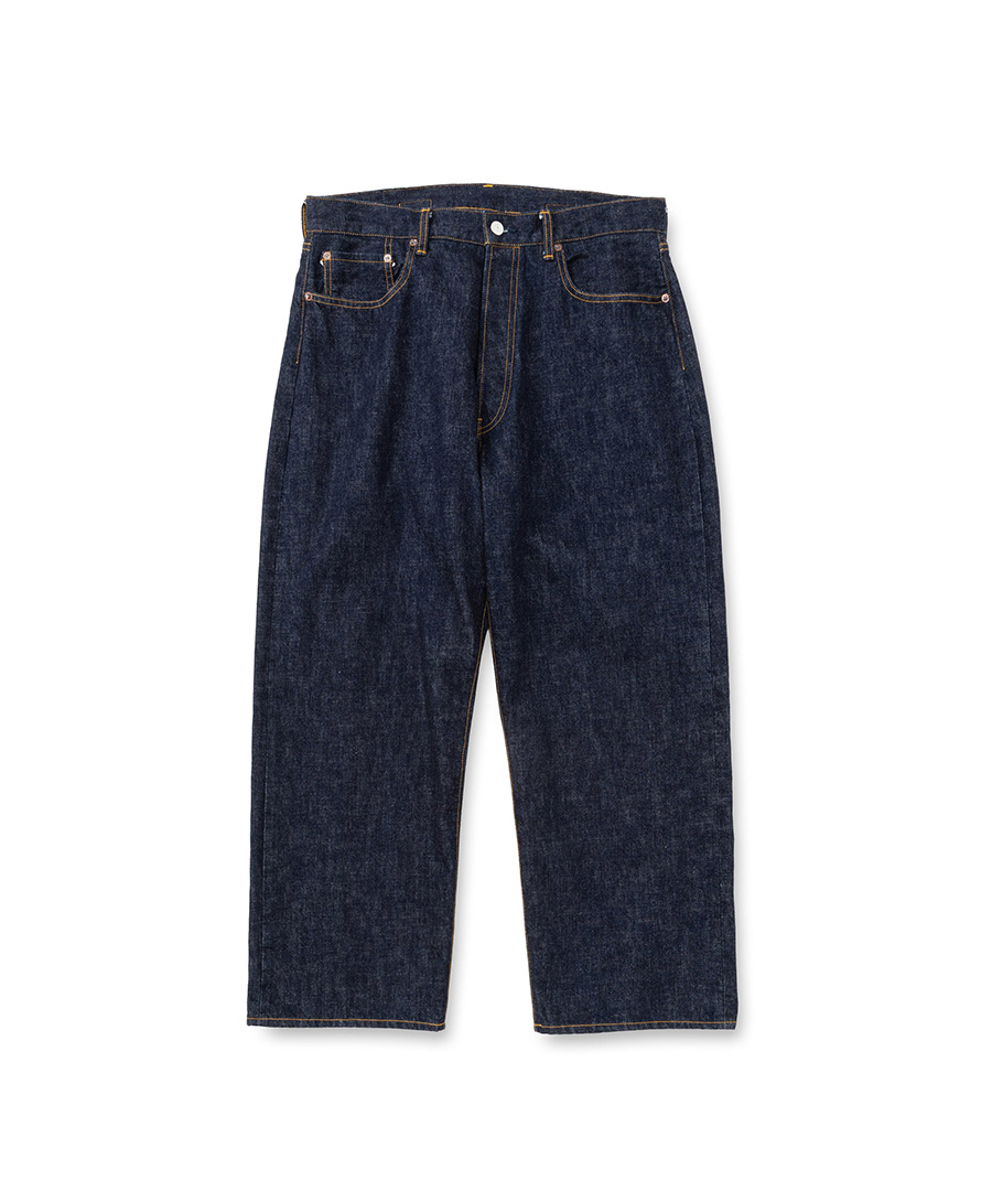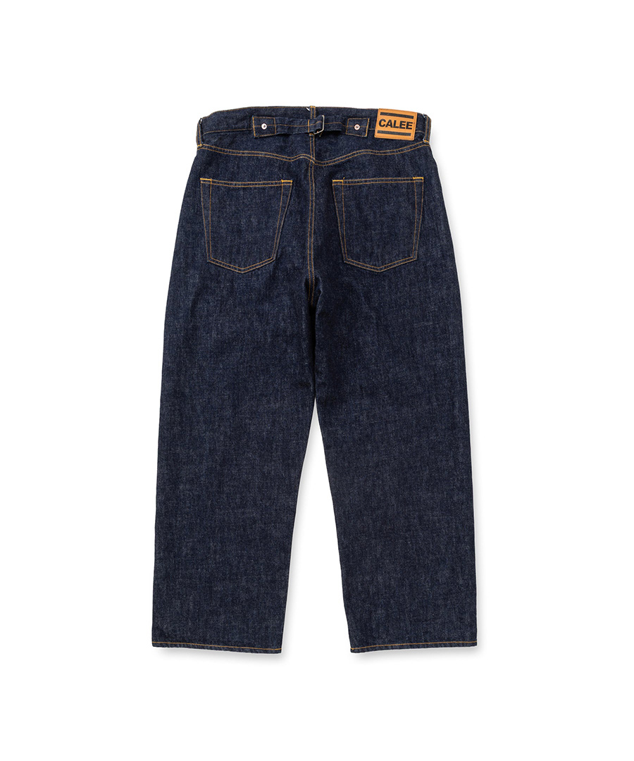 『単一米綿を使用した、ピュアインディゴの14ozヴィンテージリプロデニム生地を採用したシンチバックデニムパンツ』