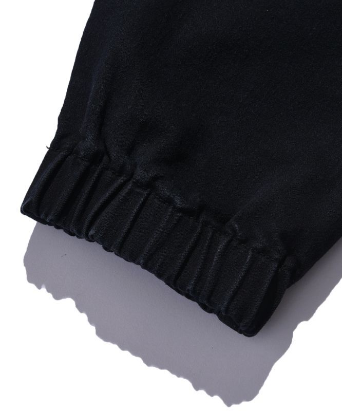 リブの締まりがしっかりとしたジョガーパンツ。 六つのポケットがついておりウエストはゴムを使用 ストレッチ生地を使用いているため不自由を感じさせません |