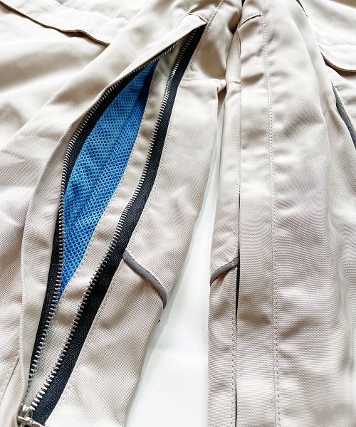 | 高密度なハイスペック素材を使用したナイロンパンツ。 随所に可動域を計算し構成された立体的で美しい3Dシルエットでフレアながらアンクル部分が内側でホールドされるので裾を引きずりません。 ウエスト部分はゴムが内蔵されており、29インチ〜34インチ位まで対応できます。 切り替えし部分にリフレクターパイピング、左膝部分にはデザイナーが敬愛する、 アイスランドの歌姫bjork(ビョーク)の左腕に入っているバイキングコンパスのタトゥーをモチーフにしたリフレクタープリントが入ります。 裏地のメッシュの配色や、細部までデザインされた使い回しも効く便利な作品です。 |