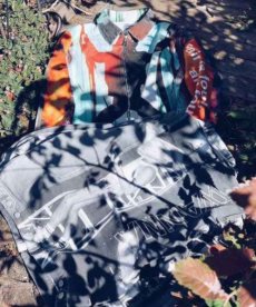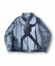 | 1パリッとした肌触りの比翼仕立てのプリントコットンシャツ。 1983年に公開されたNY graffiti cultureを題材にした某映画から着想を得て作成されたコットンJKTです。 デザイナーがNYを訪れた際、SUBWAYの柱の隙間に,NYのHIPHOPシーンのパイオニアである DJ kay slay(故DJ kay slayもこの映画にgraffiti writer “Dez”として出演。)への ”RIP DJ kay slay”のタグを偶然見つけ、このデザインを世に出さねばと誓い制作されました。 フロントの“◯ンディホワイト”然り、ドル札で顔が見えない”◯ースヘリング”然り。 様々に混在するカルチャーの要素を、ステレオタイプではなく、オリジナルのスタイルに変換する事の重要さを表現したデザインです。 |