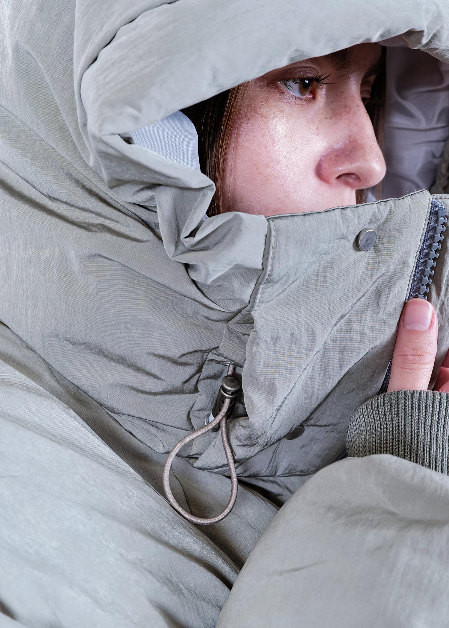 | ・APPLEBUM(アップルバム) 2025 AUTUMN&WINTER COLLECTION 新作 【コンパクトな丈感に迫力のネックデザイン】 ・特徴的なボリューム感あるフードと首元のデザインが魅力のショート丈コットンジャケット。 ・着丈を短くし、肩を落としたリラックスシルエットが程よい抜け感を演出します。 ・フードを被った状態、ファスナーを上まで閉めた状態、そしてファスナーを開けた状態のそれぞれで全く異なる印象を与え、様々なスタイリングを楽しめます。 ・マットながら光沢感も感じられる生地が、都会的で洗練された雰囲気を醸し出します。 ・首元のボリュームが存在感を放ち、個性的なスタイリングを叶えてくれる一着です。 【Black/着用モデル】 身長 178cm 着用サイズ L |
