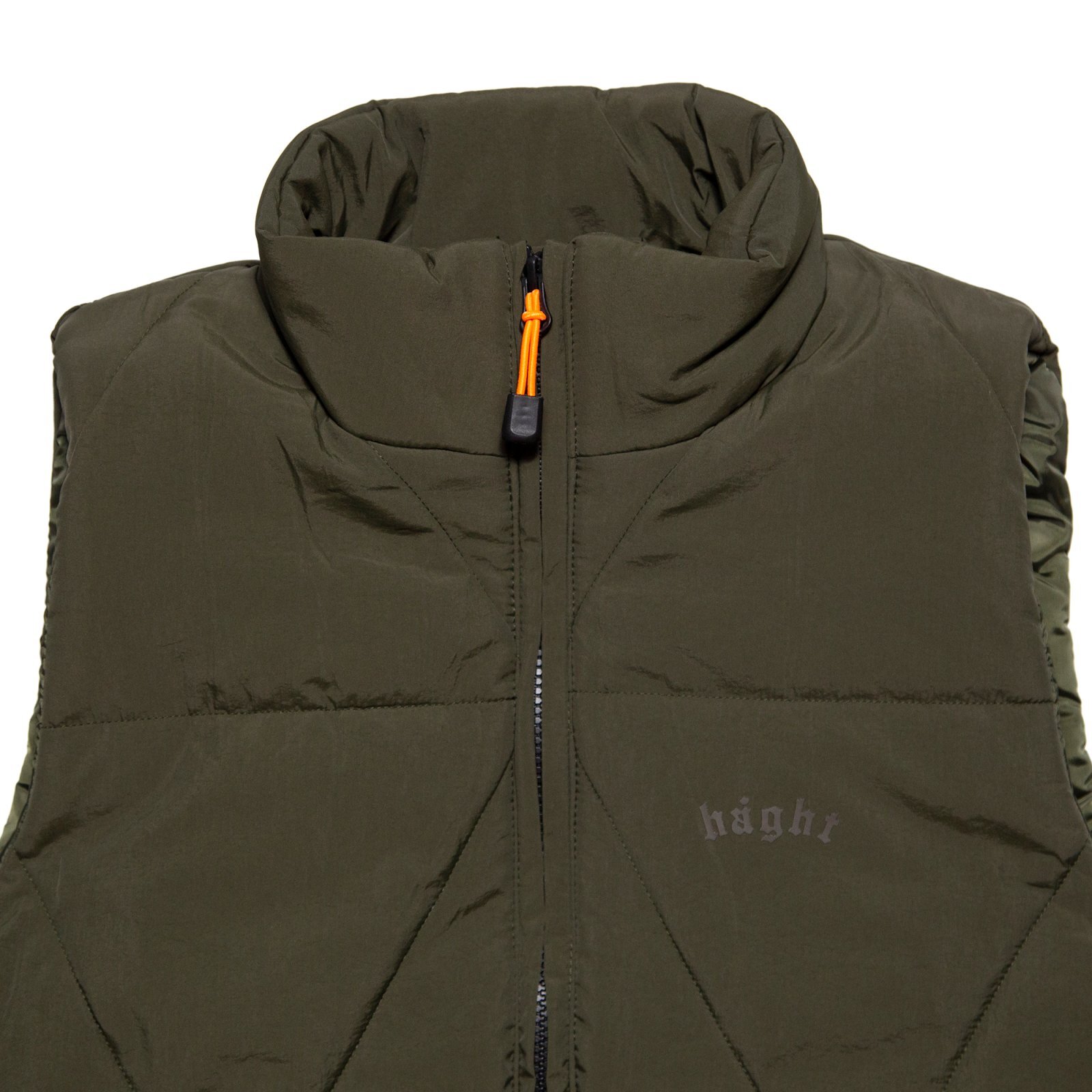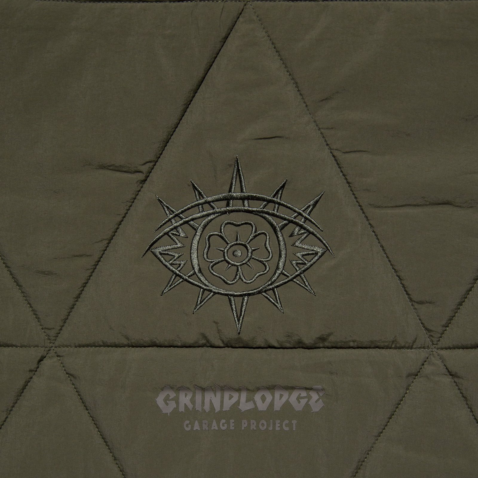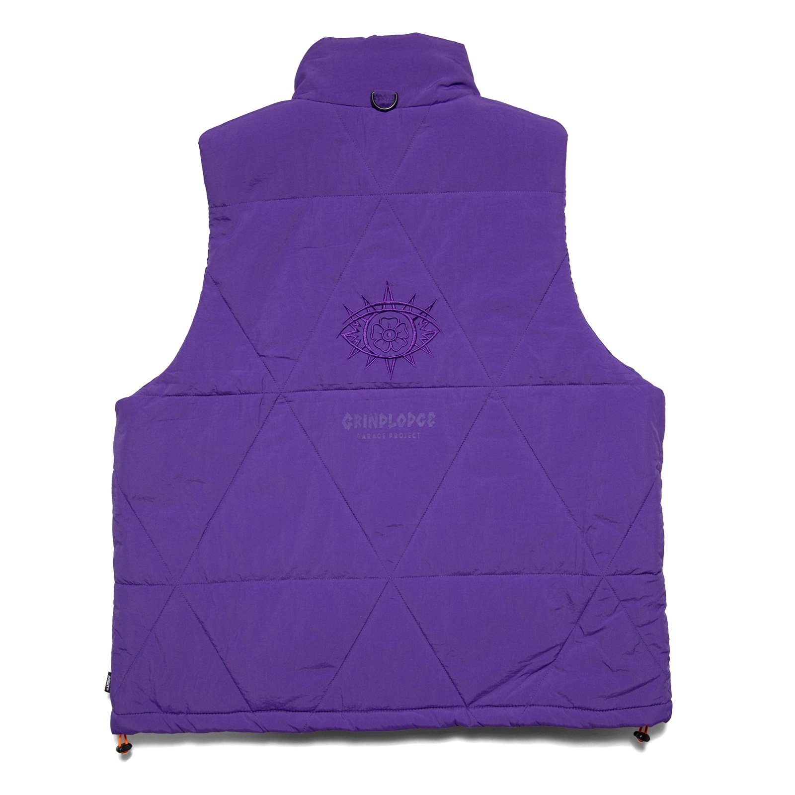 | HAIGHT(ヘイト) 2025 AUTUMN & WINTER COLLECTION 神奈川県川崎市のガレージを拠点に活動するクリエイティブ集団「GRINDLODGE」とのコラボプロダクト。 三角形のキルティングを全面に施した、ナイロン素材の中綿ベスト。 バックスタイルの中央の三角形に目の刺繍を施し、GRINDLODGEのアイコンを表現。 フロント左胸にはコラボロゴ刺繍、バック刺繍下のロゴは同色の立体プリントで仕上げることで、表情は抑えつつ存在感を残すバランス感に。随所に配されたオレンジのドローコードと引き手がアクセントとなり、全体の無機質な印象を程よく崩す。 表地には軽量なナイロン素材、裏地はタフタを使用し、中綿には高機能素材 "3M™ シンサレート™" を採用。 保温性と軽快な着用感を両立した一着に仕上がっています。 Linked with "GRINDLODGE " 「GRINDLODGE」 神奈川県川崎市のガレージを拠点に活動するクリエイティブ集団。 木材、鉄、コンクリートを用いたスケートボード用セクションの制作から始まり、現在ではアパレルやアートワークの制作・販売までを行う。 中でも、1枚ずつ手刷りで仕上げるシルクスクリーンプリントによるアパレル制作は、ブランドの中核を成す存在。 “生刷会”と称したイベントを各地で行い、持ち込まれたあらゆるモノにその場で刷るという、プリントカルチャーのライブパフォーマンスを展開。 量産では味わえない、その瞬間だけの表現は多くのヘッズを魅了する。 スケートボード、アート、音楽、アウトドア..複数のカルチャーを横断しながら、自分たちの手で“場”を作り続けるGRINDLODGE。 その独自の空気感は、国内外のフェスやイベントでも強い存在感を放っている。 |