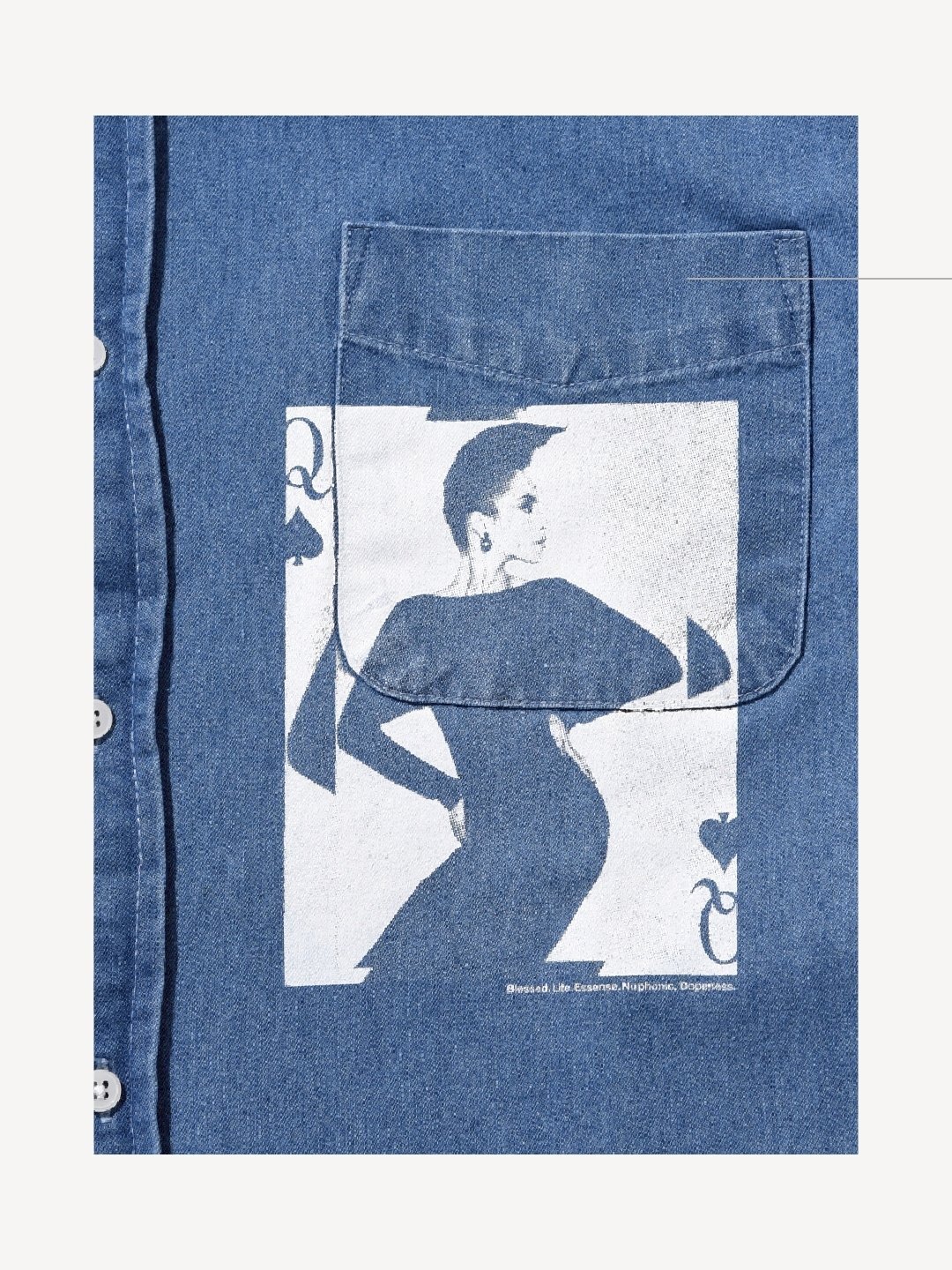 | ・BLEND 2025 AUTUMN&WINTER COLLECTION ・MUSIC&WEARをコンセプトに架空のダンスミュージックレーベル『BLEND TRAXX』より、デニムシャツです。 ・フロント左ポケットに、世界中から絶大な人気を誇る"QUEEN"をトランプアートでプリント。 ・バックには、音楽カルチャーへのスローガンが落とし込まれてます。 ・バランスの取れたワイドシルエットに、ユーズド加工が施されたデニムシャツとなってます。 ・洗い込むほどにプリントの擦れなど風合いが楽しめる一着。 |