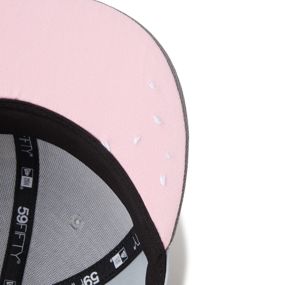 | NEW ERA(ニューエラ) 桜の季節に降る雨をテーマにした、情緒あふれるMLBカラーカスタムコレクション。 桜の開花時期に降る長雨「桜流し」をモチーフにした、静けさと華やかさを兼ね備えたデザインです。 ボディーカラーにはさまざまなグレーを採用し、雨天と濡れた街並みを表現しています。 桜をイメージしたピンクを随所に配色し、アンダーバイザーには花びらをレイアウトしました。 シルエットはニューエラを代表するスタイルの59FIFTY。 フロントパネルの内側に独自の芯を作ることで型崩れしにくいクラシックなシルエット。 サイズ調整のない仕様で、約1cm刻みのサイズ展開。 頭の小さい方から大きな方まで、ジャストサイズで被ることができます。 また、アジャスターがないので、リアのシルエットが美しく、頭の形が綺麗に見えます。 |