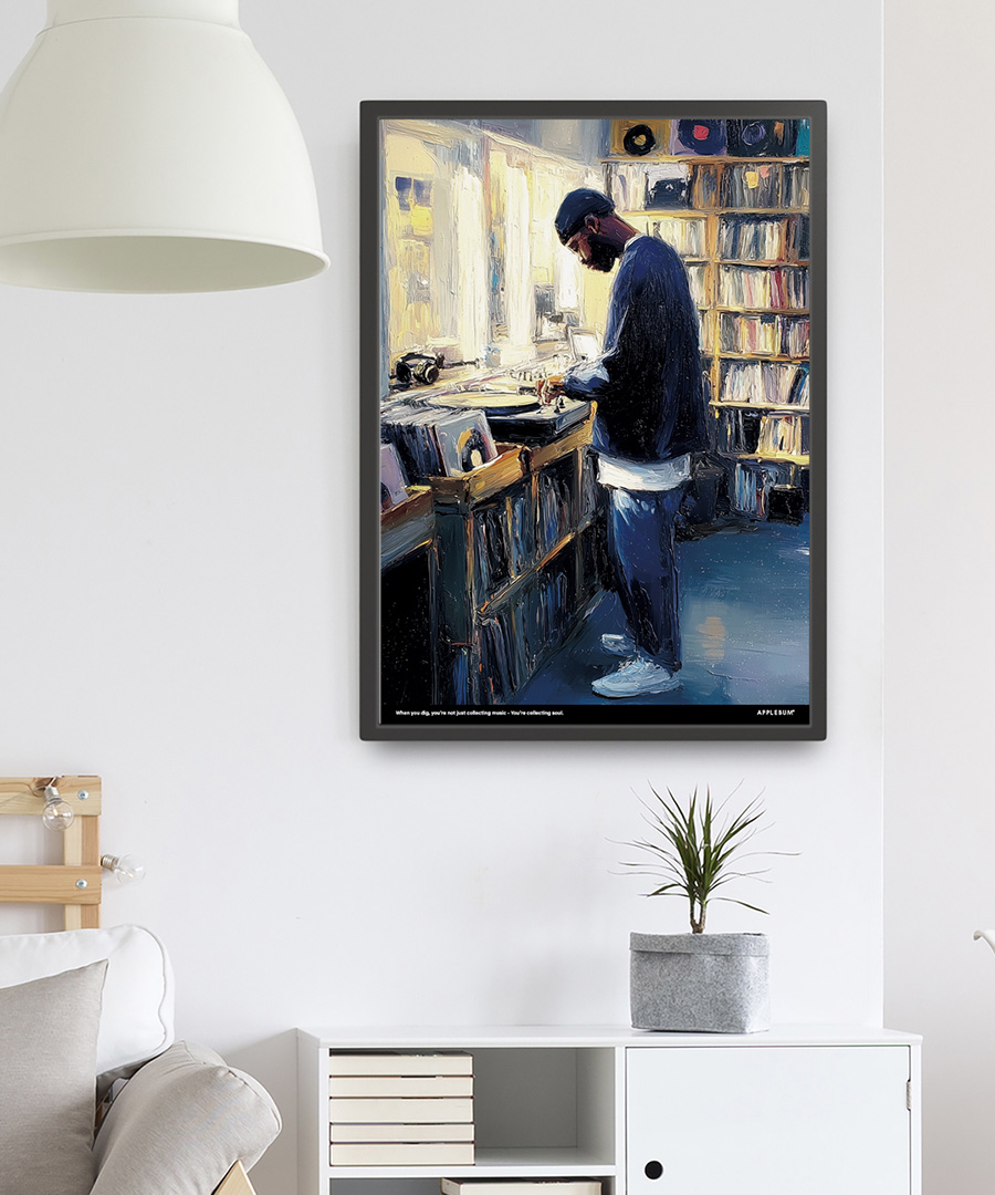 | APPLEBUM(アップルバム) 2026 SPRING&SUMMER Collection 新作 ・レコードショップでディグに没頭する姿を、油絵のようなタッチで描いたグラフィックのA1ポスター。 ・ポスター下部には、「When you dig, you're not just collecting music. You're collecting soul.」 (ディグするとき、君が集めているのは音楽じゃない。魂だ。) のメッセージ。 ・レコードを掘り起こす行為を、単なる収集ではなく“魂を探すこと”として捉えた一枚です。 ※実際の商品には額縁は付きません。 ※丸めた筒状の状態で発送となります。 |