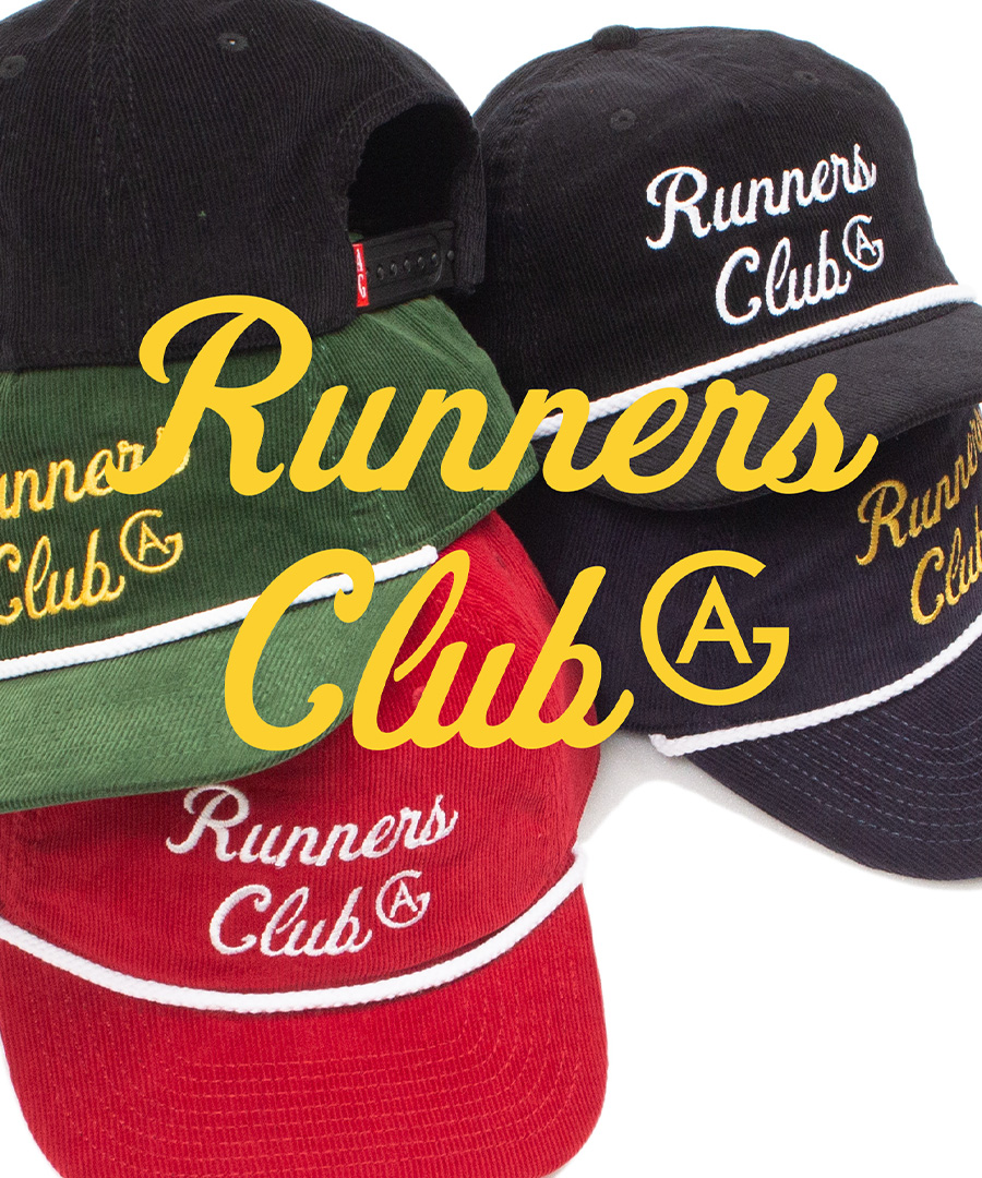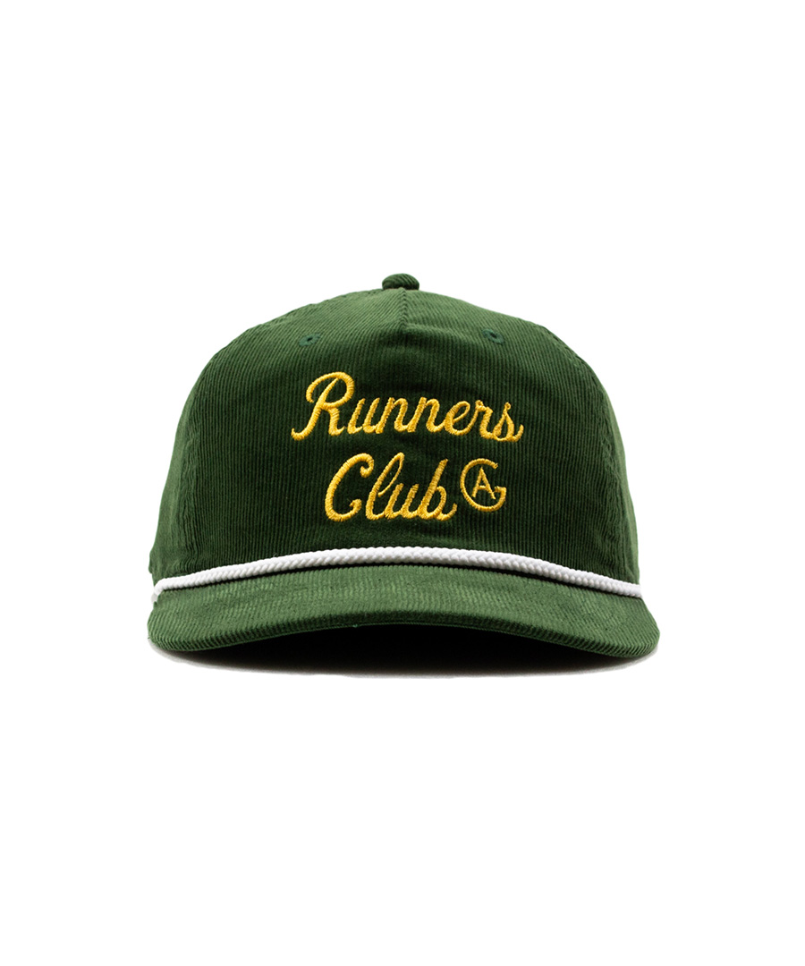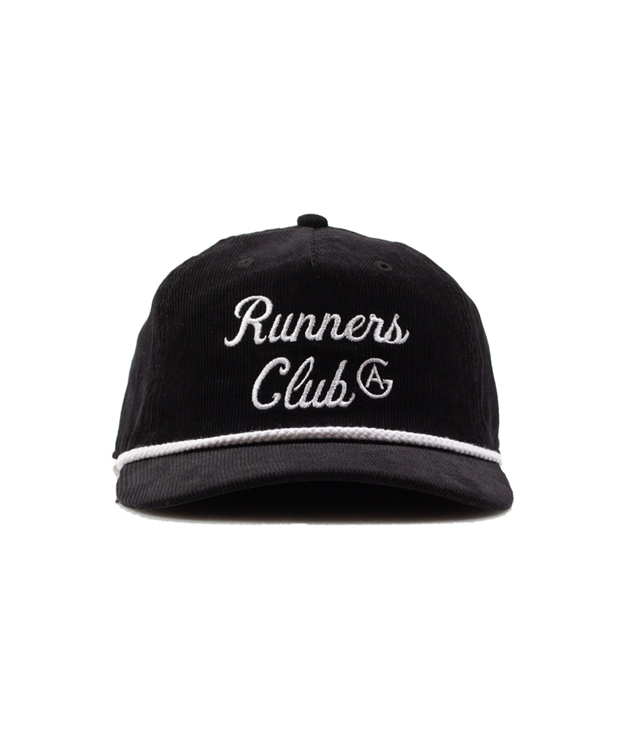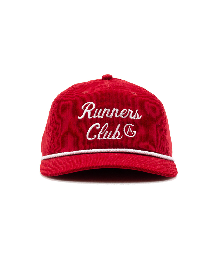 | ACAPULCO GOLD(アカプルコゴールド) 2026 SPRING COLLECTION ・近年 Larry June などのオシャレさんが浅めに被るスタイルで注目の5パネルは比較的細めのコーデュロイ生地が使用され マリーンスポーツを感じさせるコントラスト色のロープが付属され "AG・ランナーズ・クラブ " のロゴが映える刺繍が施されたスナップバック |