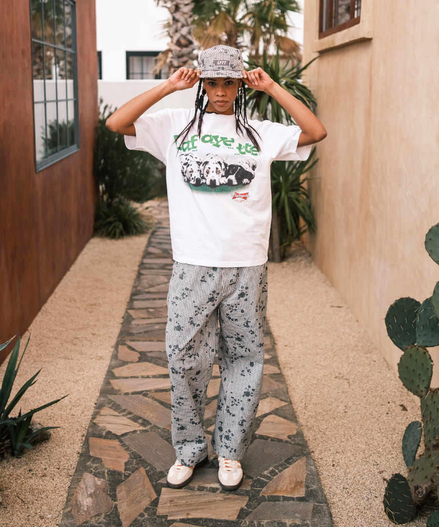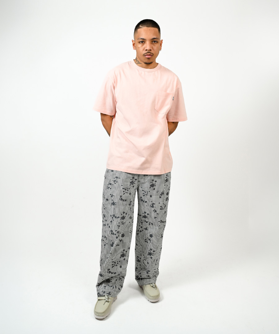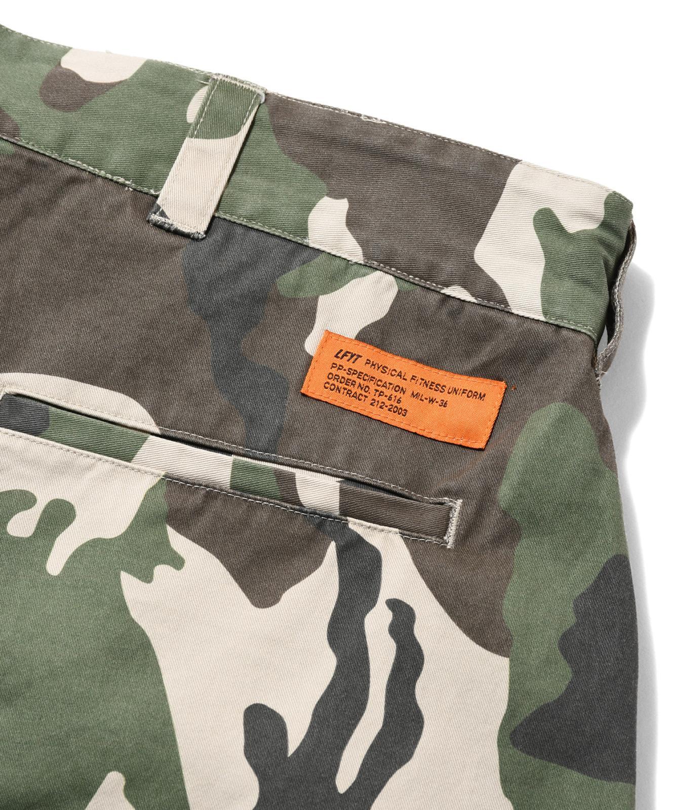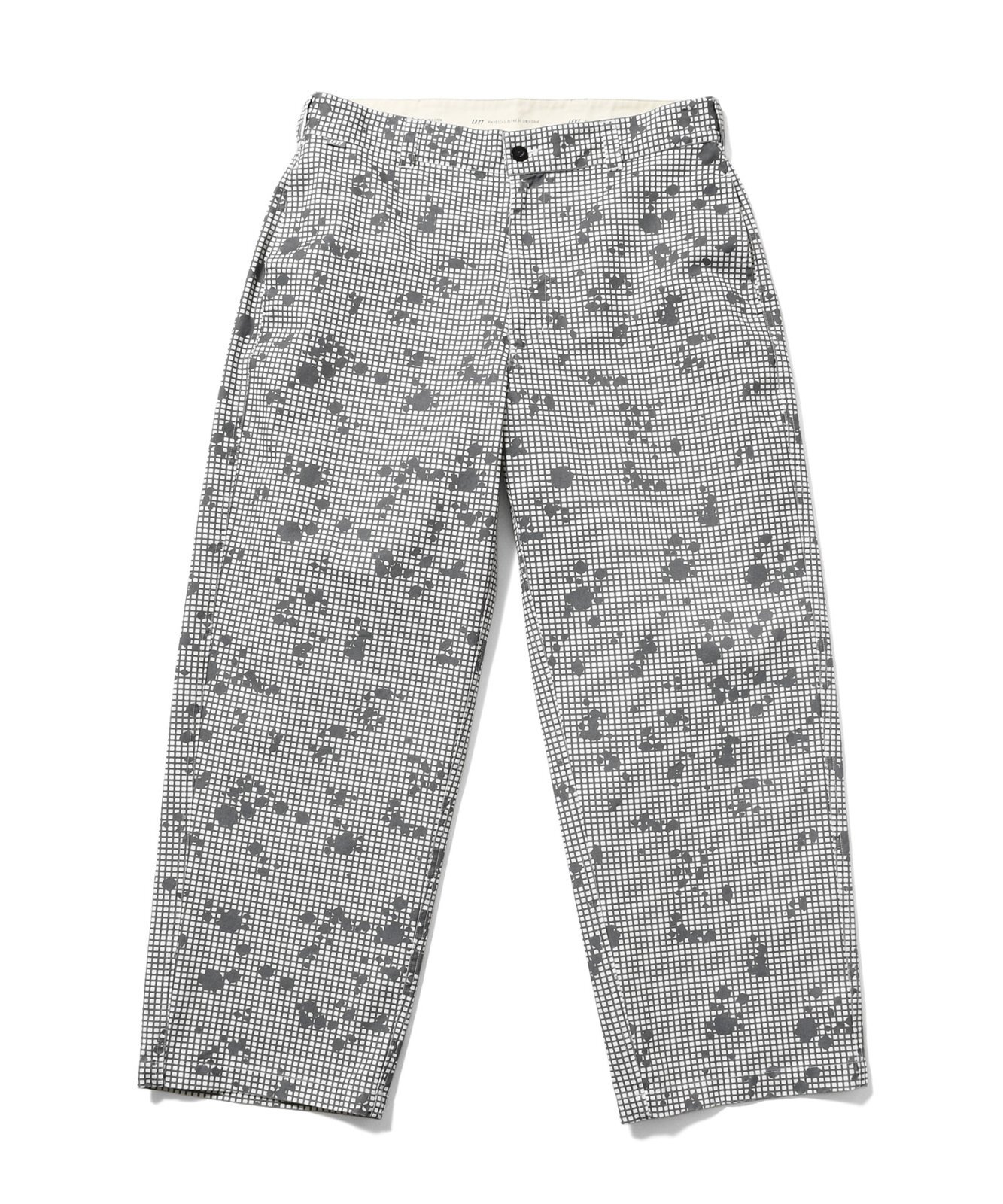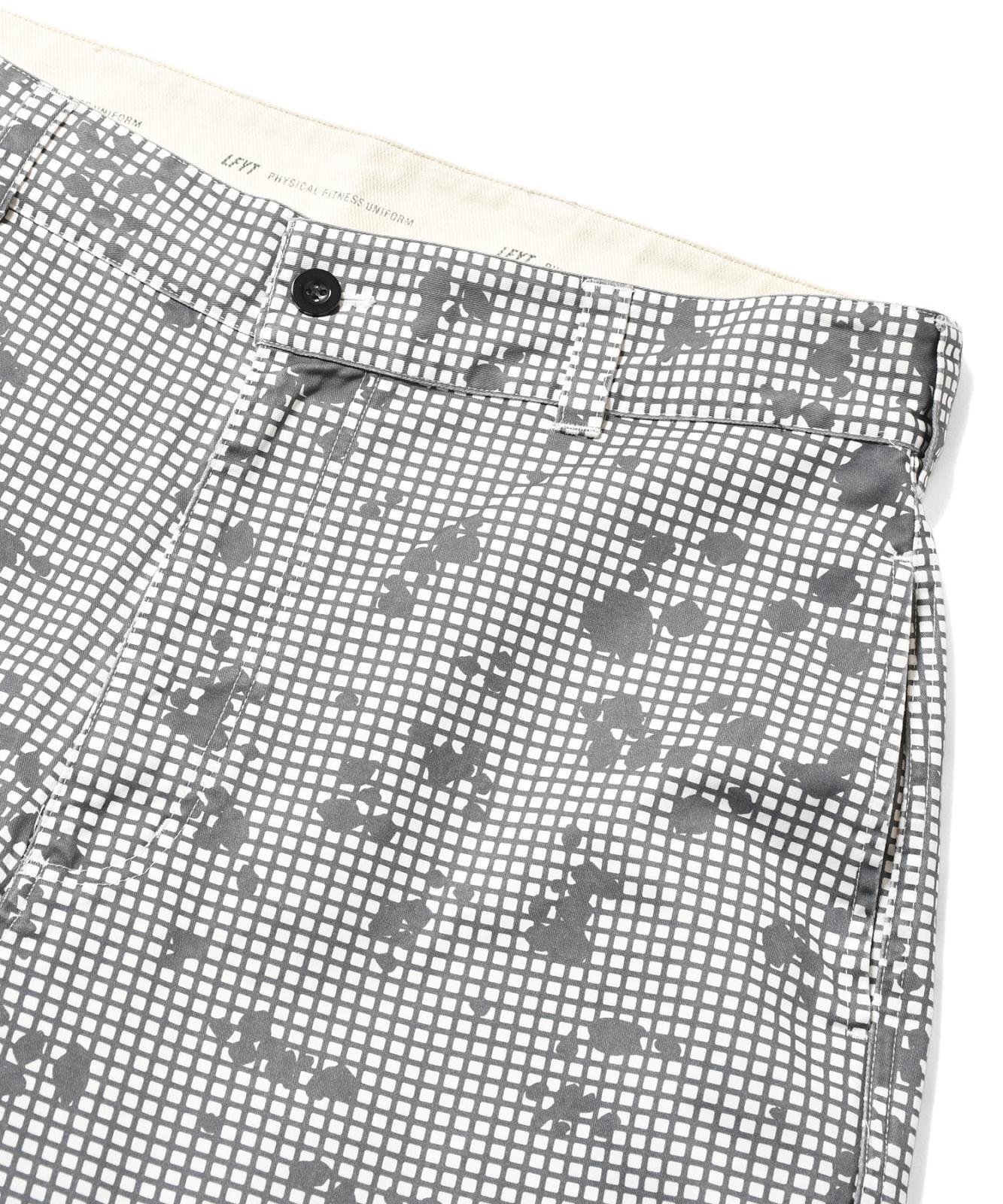 | LFYT(ラファイエット) 2026 SPRING&SUMMER COLLECTION ワイドストレートシルエットで仕上げたチノパンツ カラーは、ベーシックなネイビーに加え、柔らかな色味で構成されたウッドランドカモ、 シンプルな格子柄にインク染みのようなスポットを配した都会的な印象のナイトカモの全3色展開。 内側の腰部分のスレキには「LFYT PHYSICAL FITNESS UNIFORM」のロゴをプリント。 フロントのウエストバンドにはLFYTのリフレクターネーム、 バックポケットの上にはオレンジを基調としたミリタリータグを配置し、ディテールにもこだわりをプラス。 |