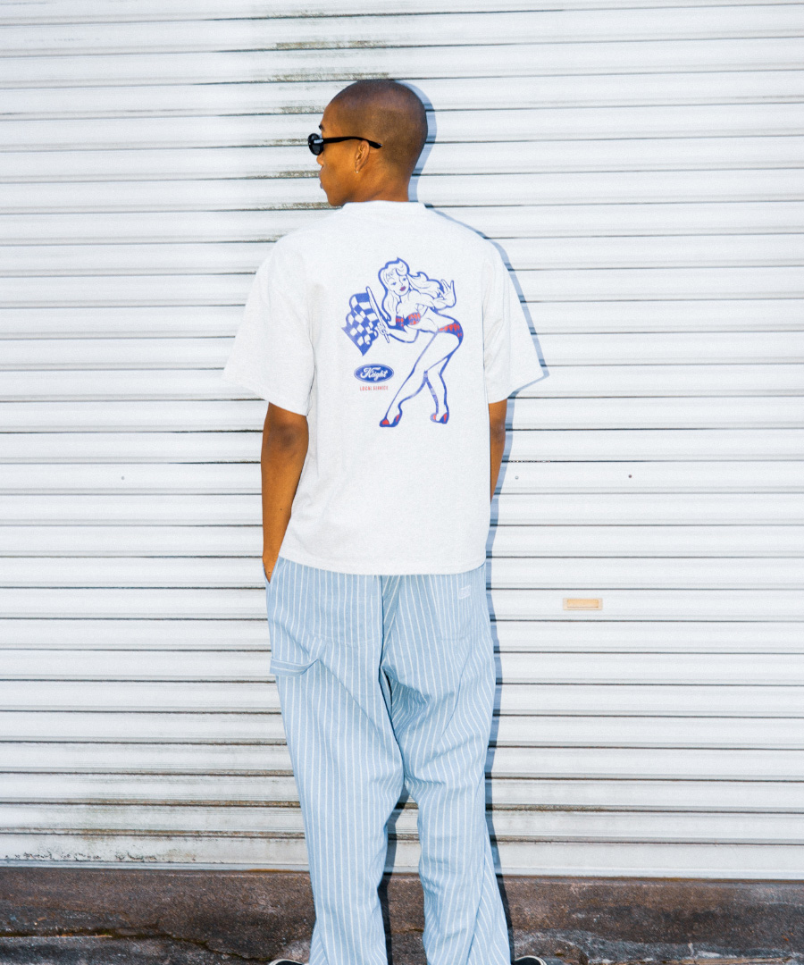 | HAIGHT(ヘイト) 2026 SPRING&SUMMER COLLECTION 左胸とバックにプリントを施したグラフィックTシャツ。 バックには、ブランドでもお馴染み RAT HOLE STUDIO描き下ろしのイラスト を大胆に配置し、POPでクセになる世界観を演出しています。 デザインソースは、架空のカーディーラーのスーベニアTシャツをイメージ。 どこかレトロでアメリカンな空気感をまとった、カルチャー色の強い一枚に仕上がっています。 Artwork by RAT HOLE STUDIO 「RAT HOLE STUDIO」 アンダーグラウンドコミック、TATTOO、HOTROD、PUNKなどを起源とするLOWBROW ART。 その業界で巨匠と謳われるMAEDA氏が主宰する、札幌を拠点としたTATTOO STUDIO。 MAEDA氏のアートワークは業界のみならず各方面でも絶大な支持を得ており、TATTOO以外にも様々なブランドへのアートワーク提供など活動は多岐にわたる。 自身もアパレルブランド” SNOID” のメインデザイナーとしての顔も持つ。 |
